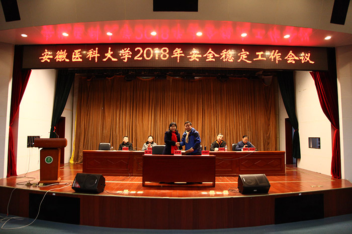 1月5日下午,我校召开2018年安全稳定工作会议。校党委书记李俊发表讲话,校长曹云霞作安全稳定工作报告并与代表单位负责人签订安全稳定责任书。校党委副书记刘群英宣读表彰决定。校领导朱启星、常业军出席会议,副校长余永强主持会议。