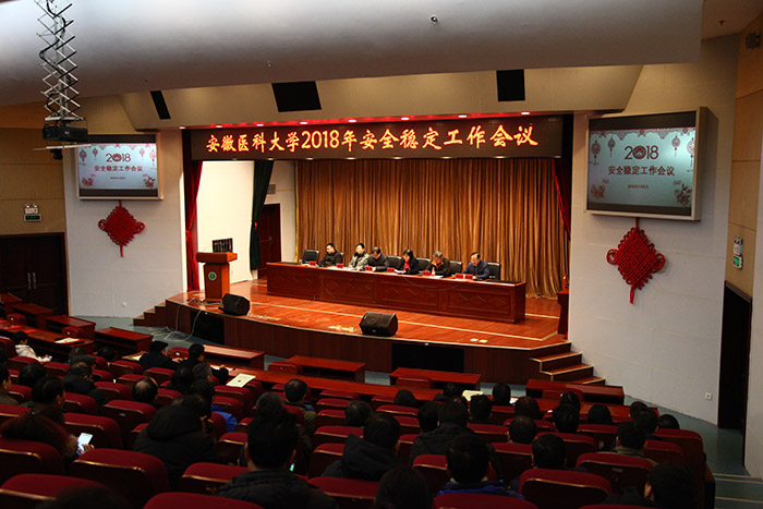 李俊在讲话中指出,2018年是贯彻落实党的十九大精神的开局之年,是改革开放40周年,也是学校实施“十三五”规划承上启下的关键一年。全体师生员工要坚持以习近平新时代中国特色社会主义思想和党的十九大精神为指导,讲政治、讲大局、讲稳定,紧紧围绕“立德树人,造就良医”的根本任务,立足于学校改革发展稳定大局,进一步认识安全稳定是一切发展的基础。以更高的标准、更严的要求、更实的措施,不断提高安全稳定工作质量和水平,为建设高水平医科大学提供强有力的安全保障。