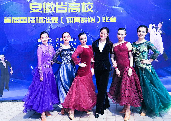 近日,2019年安徽省高校首届国际标准舞(体育舞蹈)比赛在芜湖举行。我校陈晓荣、周振茂、袁玎3位教练带领我校代表队夺得女子六人组摩登舞项目的冠军。