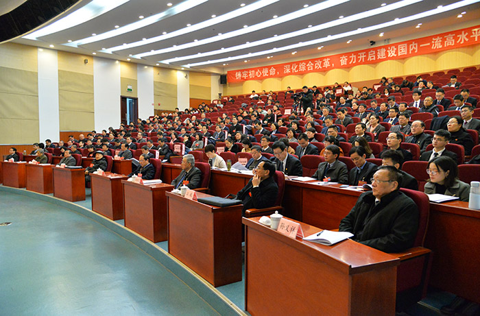 顾家山指出,今后五年,要坚定不移贯彻新发展理念,坚持稳中求进工作总基调,以高质量发展为主题、以深化综合改革为动力、以提升核心竞争力为牵引、以办人民满意高水平医科大学为主旨,重点推进校院两级管理体制改革、“院院合一”管理体制改革、校区管理体制改革、综合评价体系改革;着力实施学科引领工程、人才汇聚工程、附属医院提质工程、转化医学创新工程、办学基础保障工程;高质量推进“三全育人”、人才培养、科学研究、社会服务、文化建设和开放合作,全面提升学校综合实力和整体水平。
