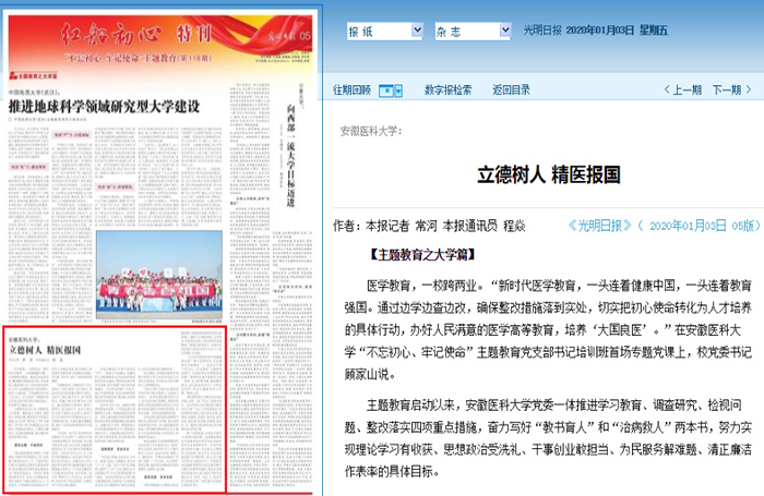 1月3日,《光明日报》第五版“红船初心特刊”以较大篇幅报道我校开展“不忘初心、牢记使命”主题教育成效。这是我校主题教育特色亮点和典型做法受到主流媒体高度关注和深入报道后的又一丰硕成果。