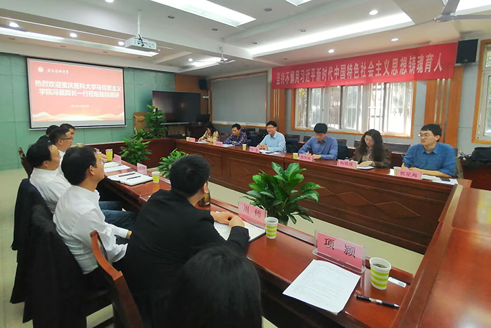 10月18日上午,重庆医科大学马克思主义学院党委副书记、院长冯磊一行六人,来我校马克思主义学院调研交流。我校马克思主义学院党委书记谢宜鹏出席会议,院长柳泽民主持调研会,副院长储著源出席会议。