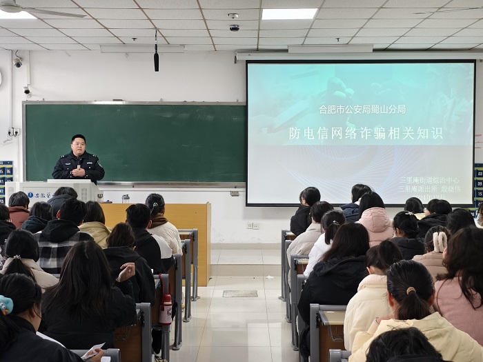 三里庵派出所民警殷晓伟结合丰富的办案经验,围绕常见诈骗手段、骗术识别技巧、“两卡”守护提示等内容,带来了一堂生动的安全教育课。他通过列举一系列真实案例,揭示了诈骗分子如何精心编织骗局,诱使受害者步入陷阱,从而达到骗取钱财的目的。结合相关视频,详细讲解了电信诈骗防范要点,希望同学们要及时下载国家反诈中心APP,进一步强化反诈辨别能力与应对能力,在涉及钱财交易和个人信息时,时刻保持警惕,仔细核实对方身份,不要轻易向陌生人转账汇款或泄露信息。同学们纷纷表示,本次讲座干货满满,今后会将此次所学知识运用到生活实践,不断提高自身防范意识同时,积极参与全民反诈宣传活动,将安全知识传递给更多的人。