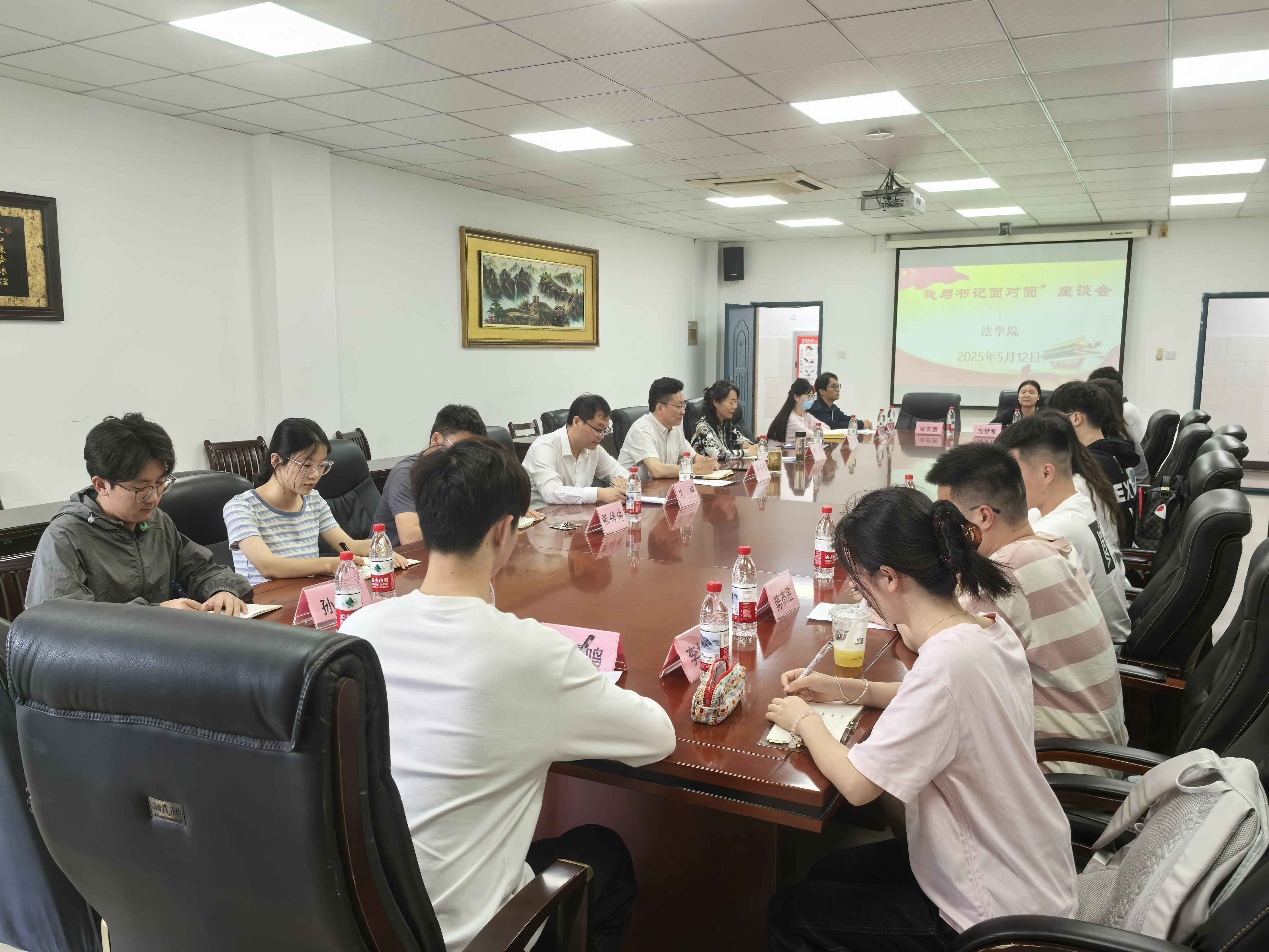 5月12日下午,法学院召开“我与书记面对面”座谈会,倾听学子心声,共话成长。学院党委书记郑圣德、院党委副书记刘燕、副院长范辉参加座谈。会议由刘燕主持。