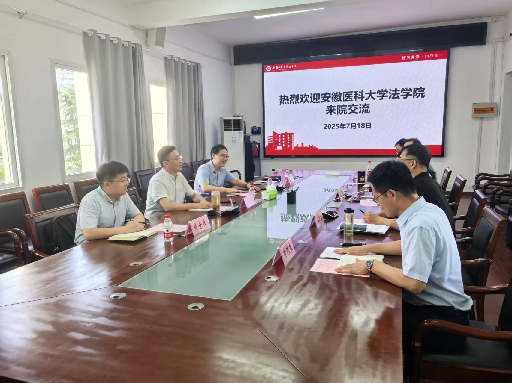 8月28日,法学院领导郑圣德、马青连、刘燕、范辉等一行8人前往安徽大学法学院,就党建和学科建设等开展调研交流,学习借鉴兄弟院校办学经验。安徽大学法学院领导毕金平、孔令勇等参加座谈交流。